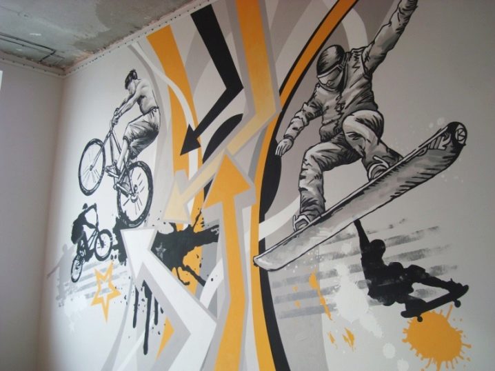 Zudem hat sich der Graffiti-Stil von den Straßen in die Wohnungen verschoben und "fühlt" sich dort perfekt. Für einen Jungen in seiner Jugend kann Tapete im Stil von Graffiti die perfekte Lösung sein, besonders wenn es Tapete sein wird. Aber Sie sollten nicht die Harmonie von Farbe und Größe des Bildes mit der Größe und dem Inneren des Jungenzimmers vergessen. Alles sollte in demselben Farbschema gestaltet sein und nicht im Gegensatz zu anderen Objekten stehen. Die meisten Kombinationen werden auf dem Fototapete Graffiti mit modernen Möbeln sein.