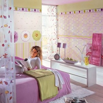 Wenn ein erwachsenes Kind im gleichen Raum mit einem Baby lebt, sollte die Tapete in einem solchen Raum von zwei Arten sein, die in unterschiedlichem Ausmaß gesättigt sind.