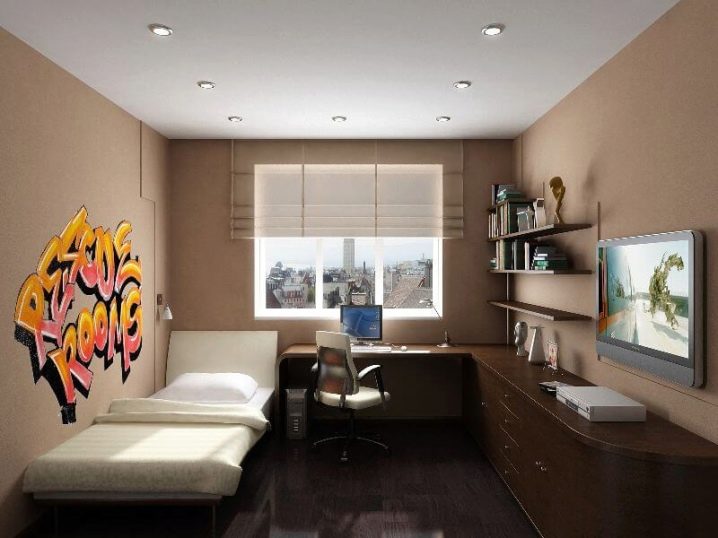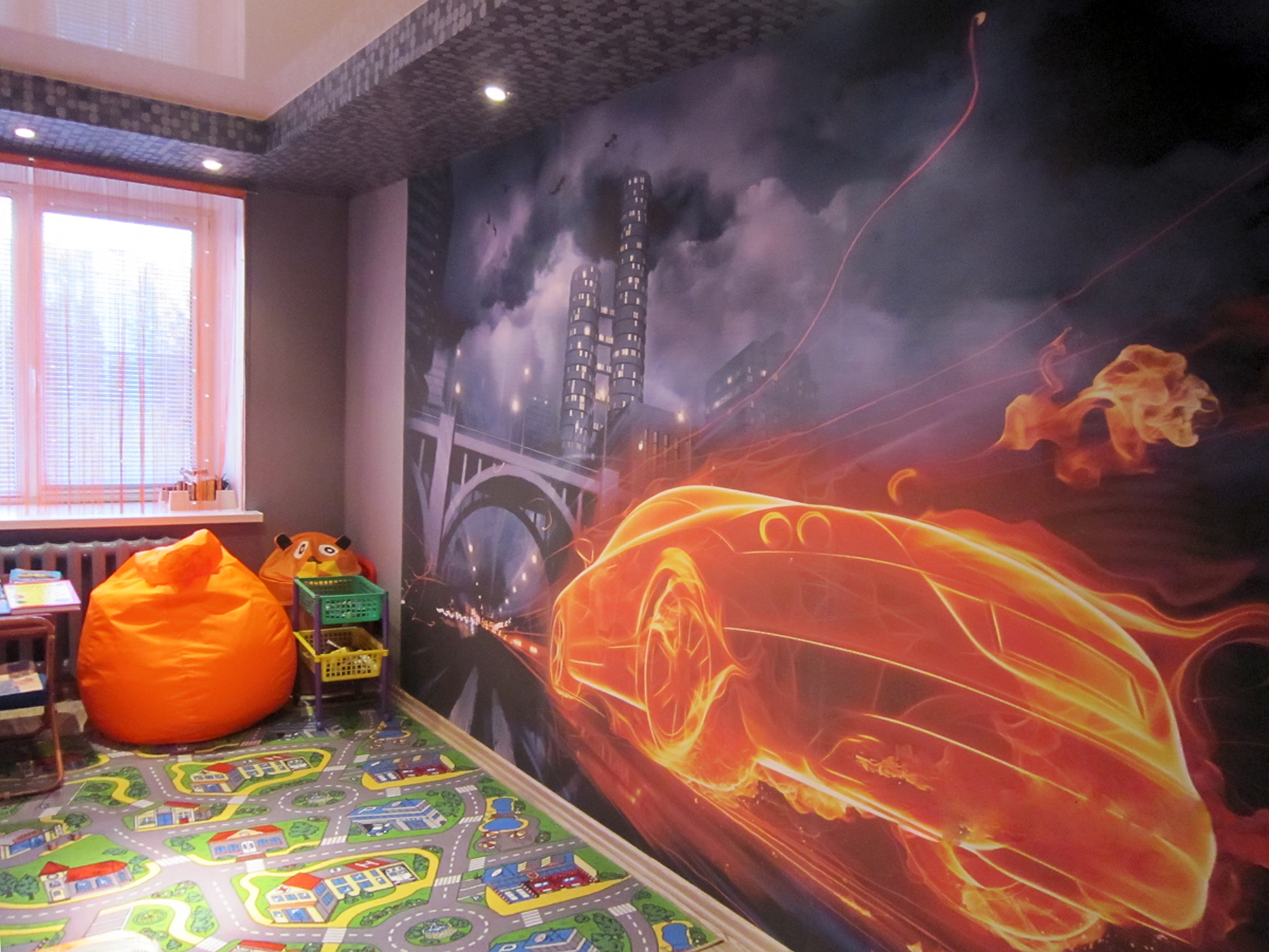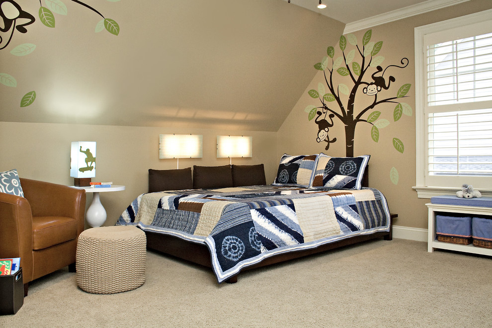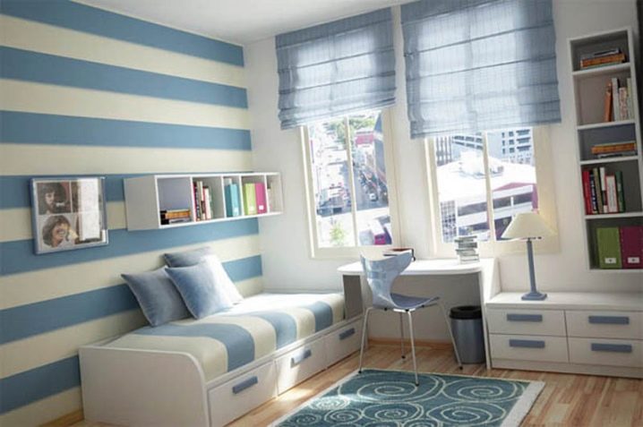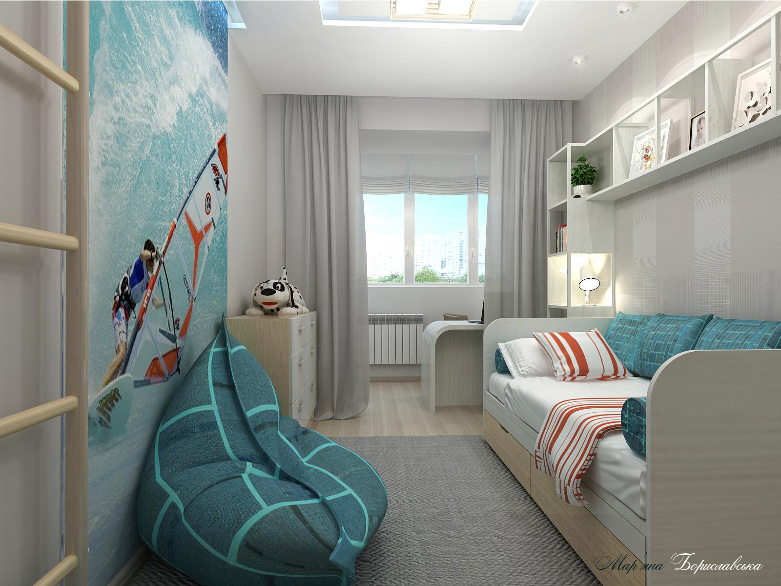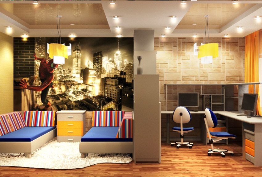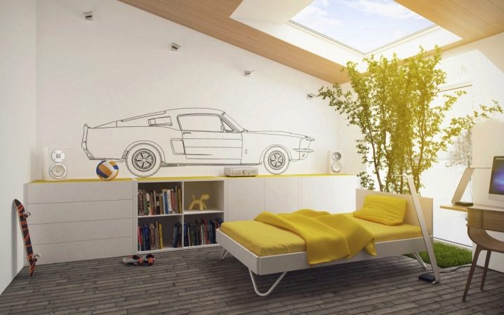 Allerdings wären stilisierte Schiffe angemessen,in einer grau-gelben Farbe, die Wände, ausgeführt unter einem Ziegelstein, oder mit Elementen von Fußball-Graffiti, wenn der Besitzer des Zimmers ein Junge ist.