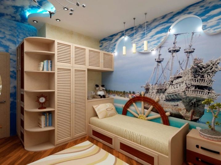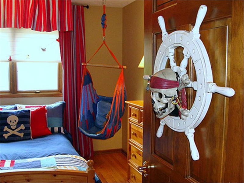 Oder, zum Beispiel, in einem Raum mit einer Meereslandschaft an der Wand hängt ein Rettungsring. Dieses Accessoire wird zumindest originell aussehen. Ihr Kind wird wahrscheinlich solche Designerfreuden zu schätzen wissen.