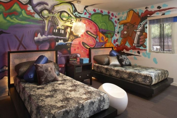 Sie können die ursprüngliche Tapete mit einem Bild von Graffiti auch haften.