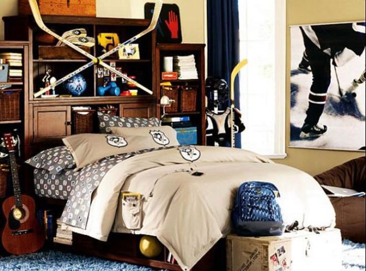Wenn Ihr Sohn Hockey spielt, dann wird ein Raum sehr stilvoll aussehen, an dessen Wänden als Zubehör Hockeyschläger angebracht werden. Sie können eine Decke mit dem Emblem seines Lieblingshockeyteams bestellen, sowie Plakate an den Wänden anbringen, die kompromisslose Eisschlachten darstellen.