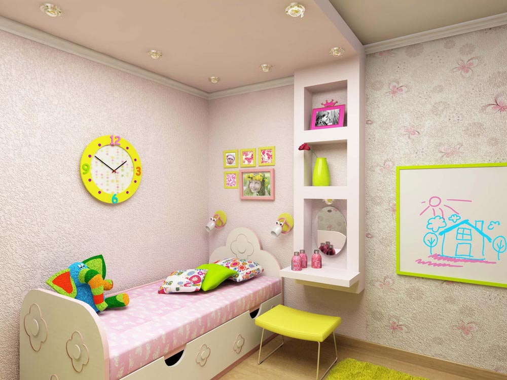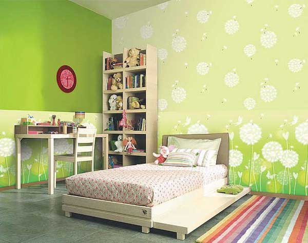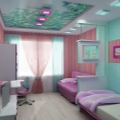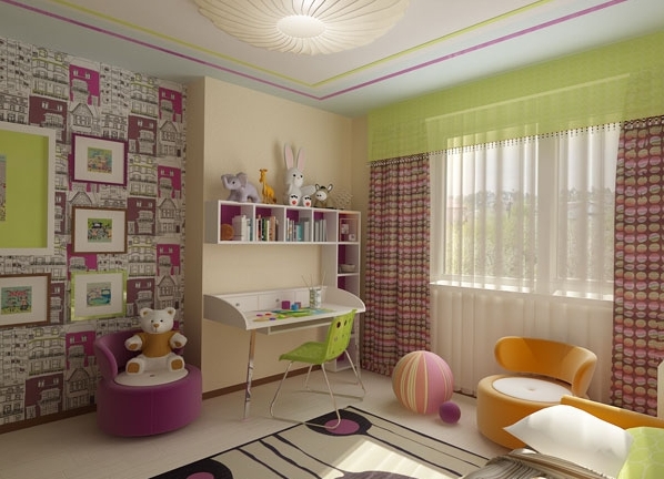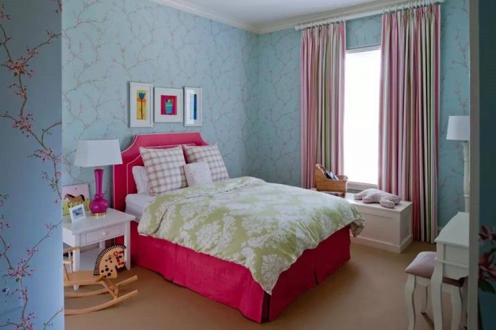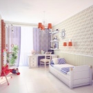 Bei der Kreation des Interieurs im Kinderzimmer wird empfohlen, verschiedene Materialien und helle Farben zu verwenden. Die richtige Wahl dafür wäre ein kombiniertes Hintergrundbild, das eine einfarbige Abdeckung mit Mustern und Mustern kombiniert. Bei der Registrierung des Zimmers für den Teenager kann man das klassische monophone Wandbild in der anderen Farbe wählen. Um eine übermäßige Farbbelastung im Raum zu vermeiden, ist es notwendig, helle Farben mit hellen, beruhigenden Farbtönen zu kombinieren.