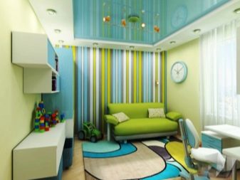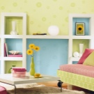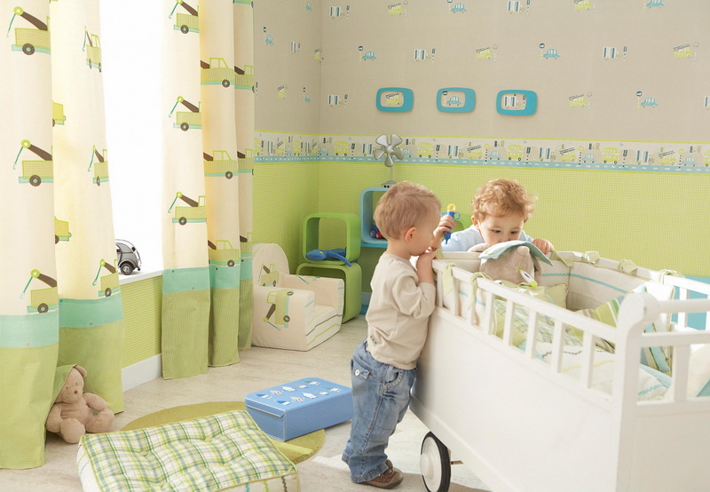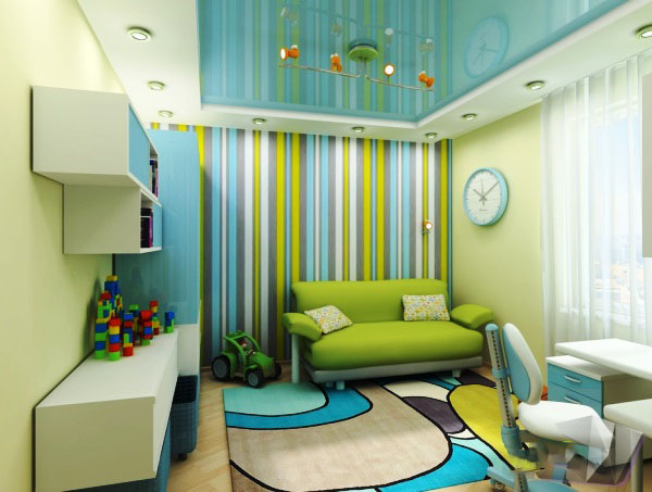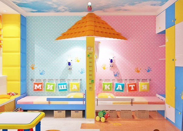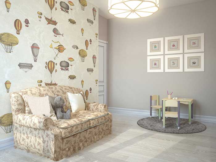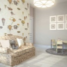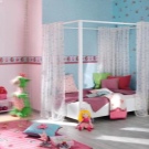 Im Inneren des Kinderzimmers ist es wichtig, sich an die Harmonie der Farben zu halten, wobei nicht nur der Design-Stil, sondern auch die individuellen Vorlieben des Kindes berücksichtigt werden. Dazu ist das Kinderzimmer konventionell in Zonen eingeteilt. Im Spielbereich empfiehlt es sich, die kombinierte Tapete aus helleren Farben zu verwenden, für das Schlafzimmer passen sich die Bahnen in neutralen Farbtönen an, im Untersuchungsgebiet empfiehlt sich die kombinierte Tapete mit beruhigenden Farben ohne Muster. Mit einer einfachen Kombination von Tüchern verwandelt sich das Kinderzimmer schnell in eine einzigartige Welt.
