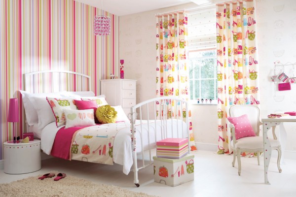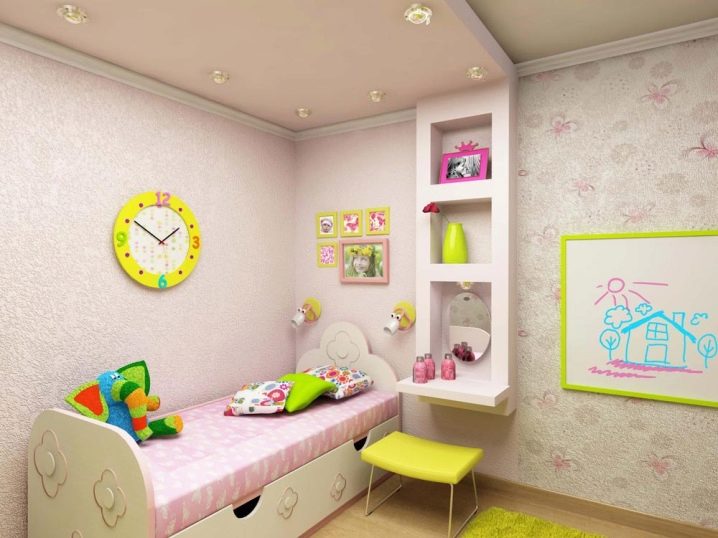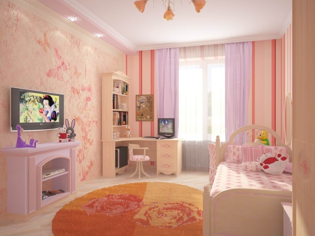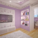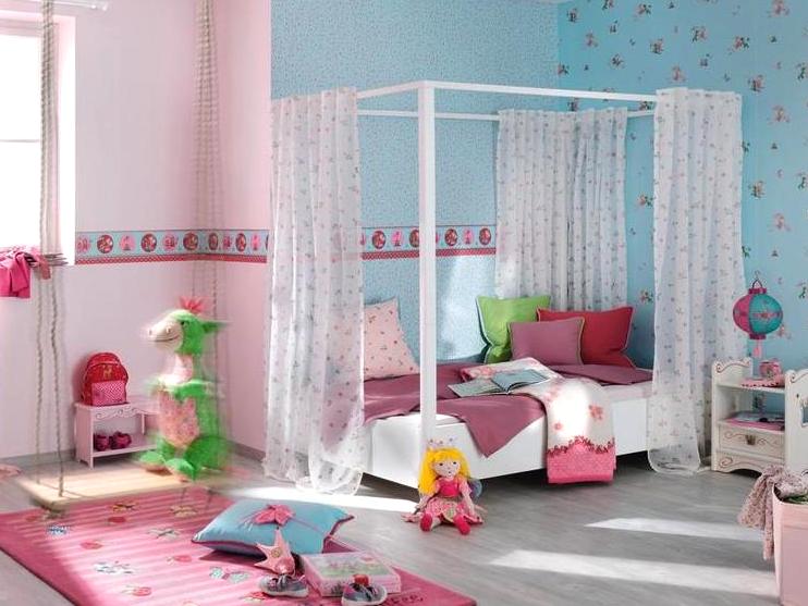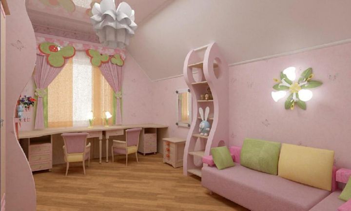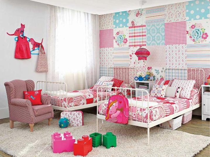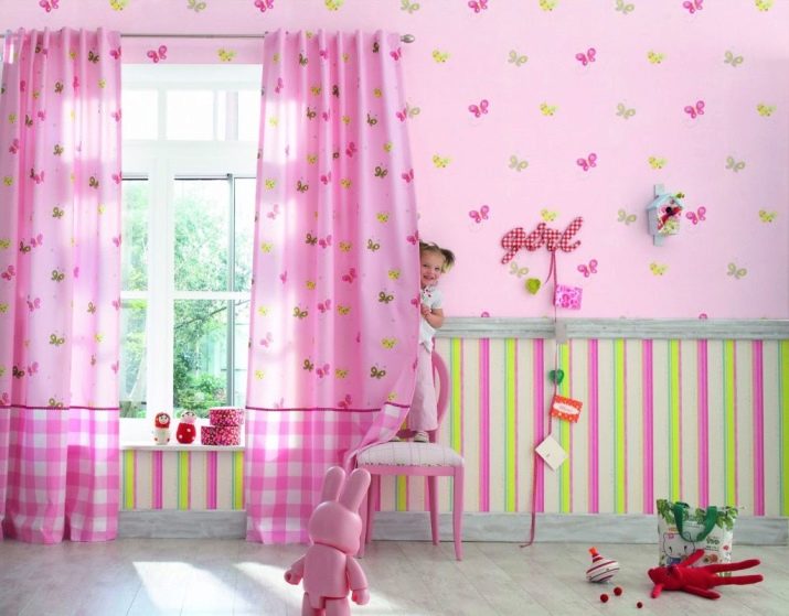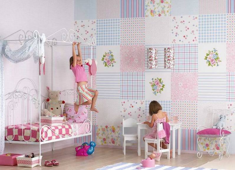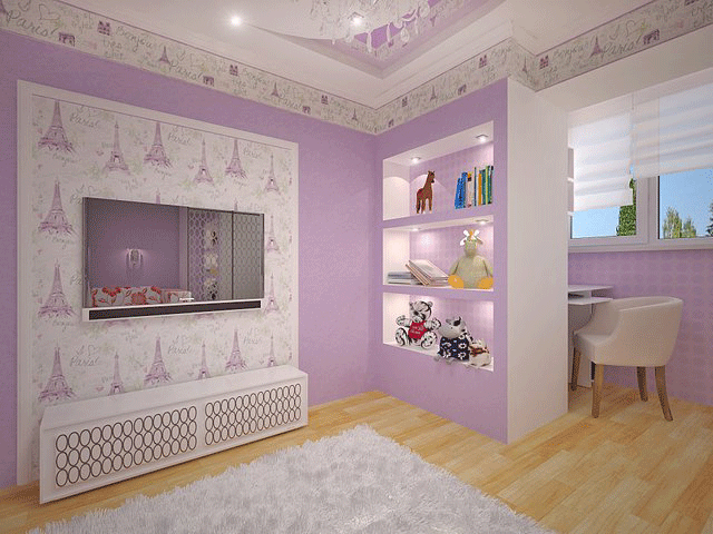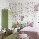 Die Verbesserung des Kinderzimmers für Mädchen verdient besondere Aufmerksamkeit. Wählen Sie eine kombinierte Tapete für eine kleine Prinzessin basierend auf ihren Vorlieben und Hobbys. Die meisten Mädchen bevorzugen lila, pink und pfirsichfarben. Traditionelle Farbtöne können auch durch kontrastierende Akzente ergänzt werden.Um dies zu tun, wenden Sie helle Muster oder bunte Aufkleber, verschiedene Blumen, Figuren an.