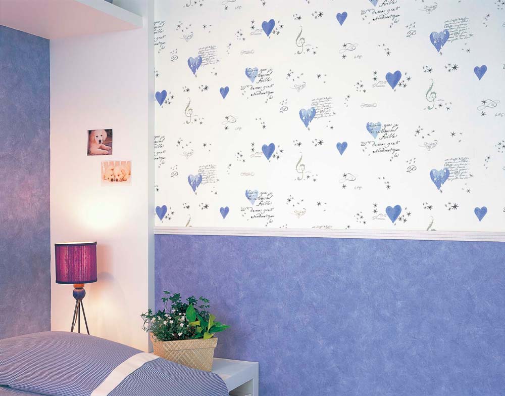 - Kombination von Tapeten mit verschiedenen Texturen mit der Erweiterung der Handlung und Themen an der Decke.