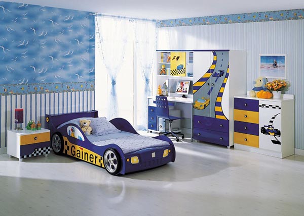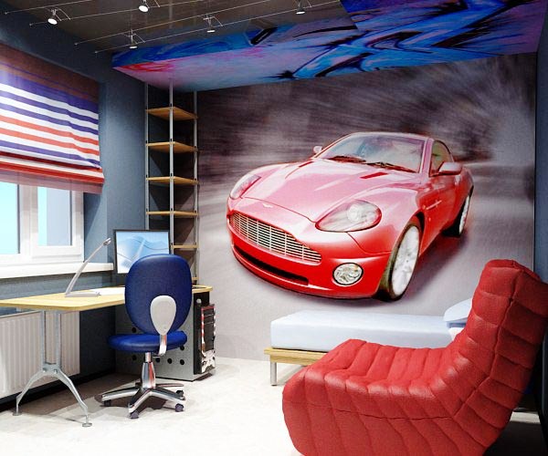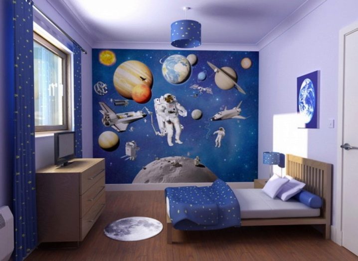 Wenn Sie ein Kinderzimmer für einen Jungen machen, müssen Sie sich auf die Lieblingsfarben des Kindes konzentrieren. Jungen bevorzugen meist kühlere und dunklere Töne. Es kann oliv, grau, blau und blau sein. Wie für das Thema, dann für Jungen passen eine kombinierte Tapete mit den Charakteren von Filmen, Cartoons, Superhelden. Eine ausgezeichnete Lösung wäre eine Wand mit Wandmalereien mit berühmten Sportlern oder Autos.