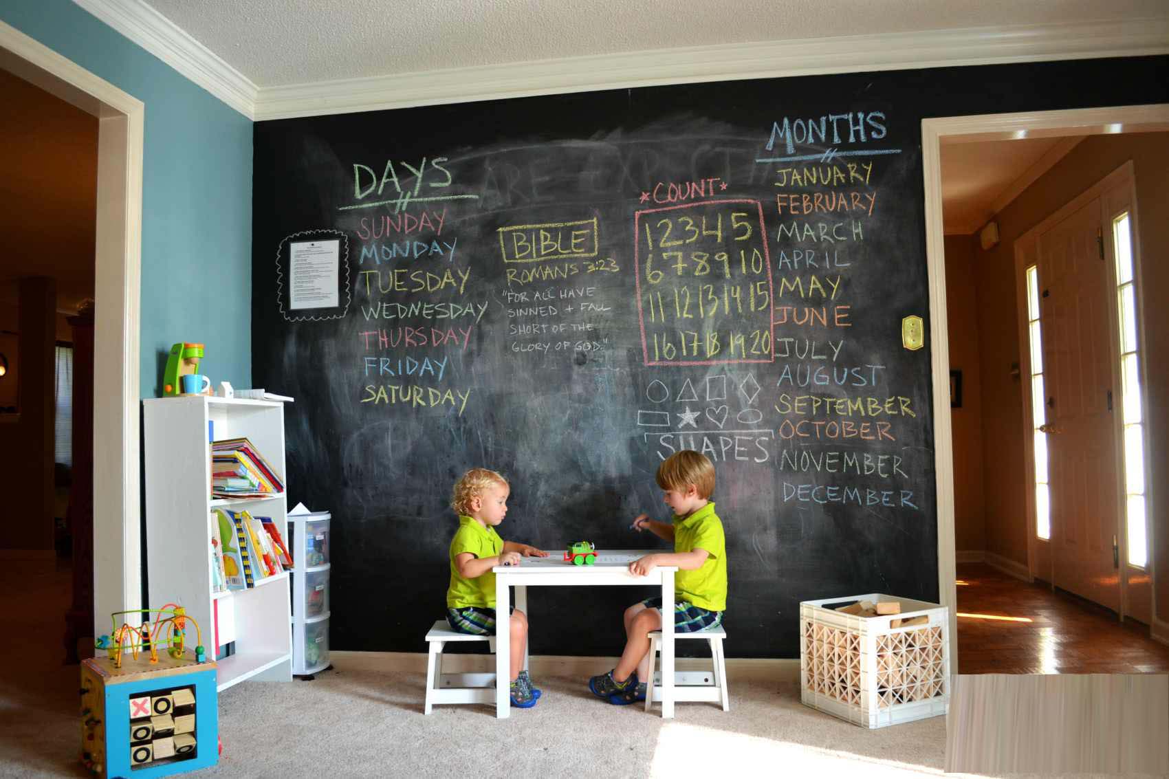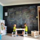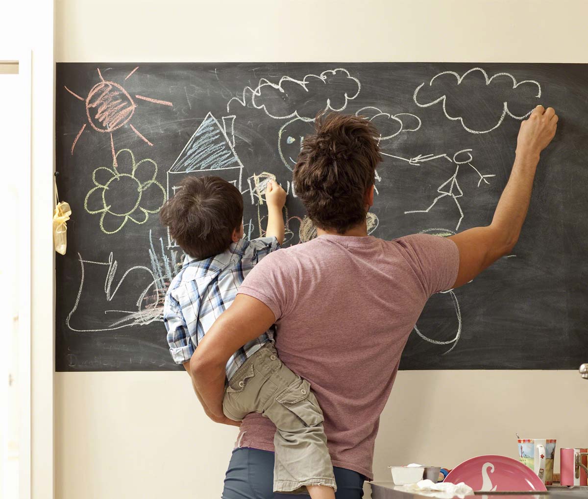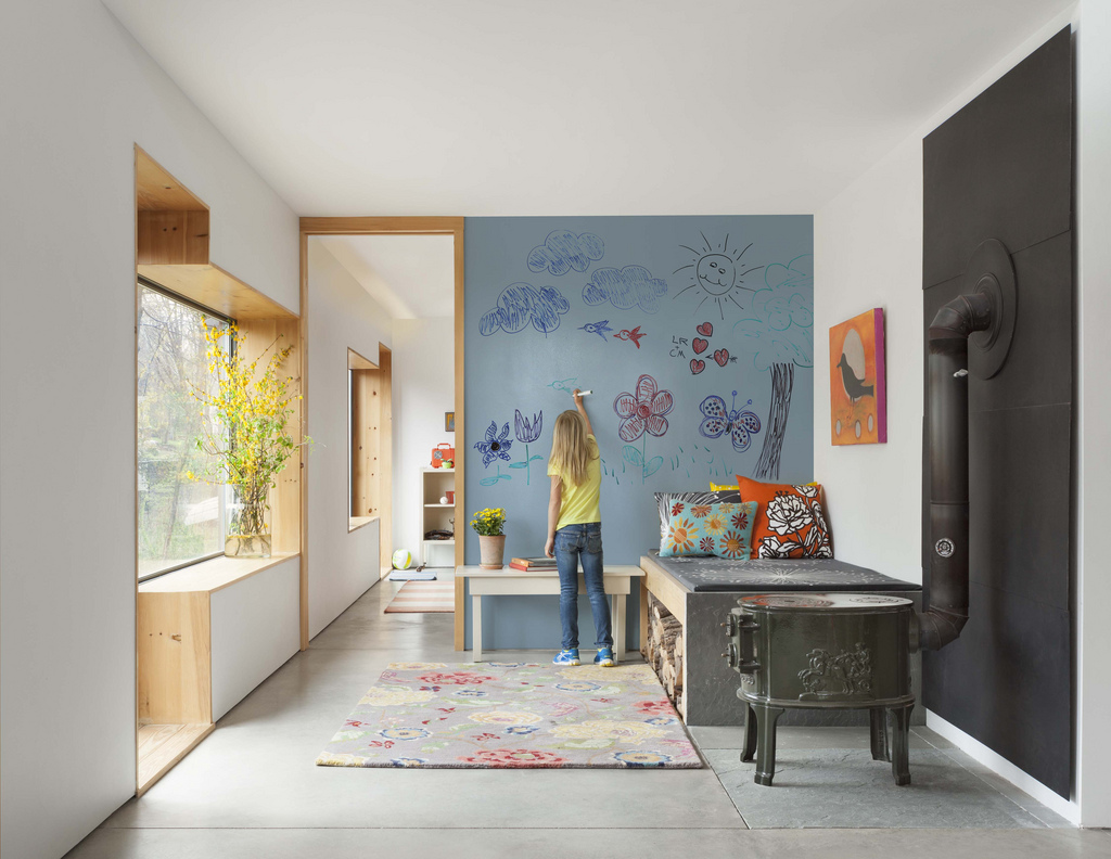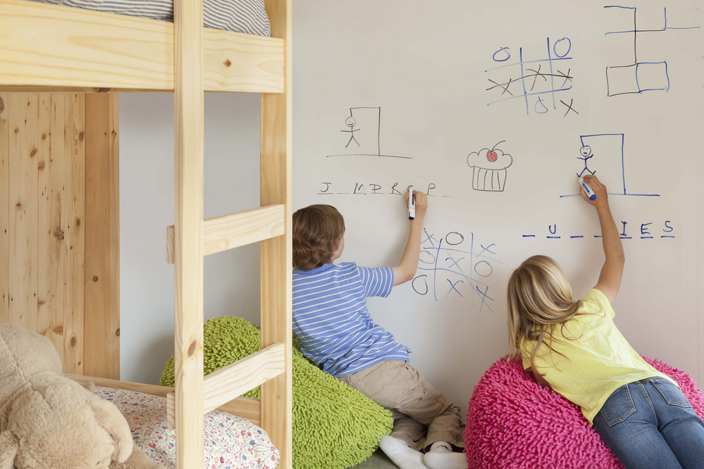 Diese einzigartige Oberfläche ermöglicht, ohne Platz in der Wohnung auf Staffeleien und speziellen Brettern zu verbringen, dem Kind den größten Spielraum für Kreativität zu schaffen.