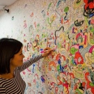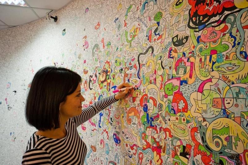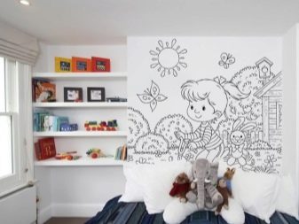 Die Tapete für das Zeichnen kann sowohl einem einjährigen Baby als auch einem Teenager mit einer hellen Persönlichkeit und einem Wunsch, sich zu behaupten, erfreuen.