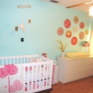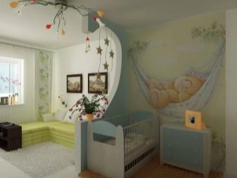 Im Hinblick auf die Farbe ist es wichtig zu erinnern, dass nicht immer Tapeten für das Kinderzimmer für das Schlafzimmer geeignet sind. So werden die hellen Farben im Kinderzimmer das Baby erfreuen und Kreativität hervorrufen, während es vom Schlaf aufregend und ablenkend ist. Die Lösung wird die Einteilung der Gärtnerei in Zonen mit verschiedenen Farben sein. Für Neugeborene ist es besser, Pastellfarben für die gesamte Raumfläche zu wählen.