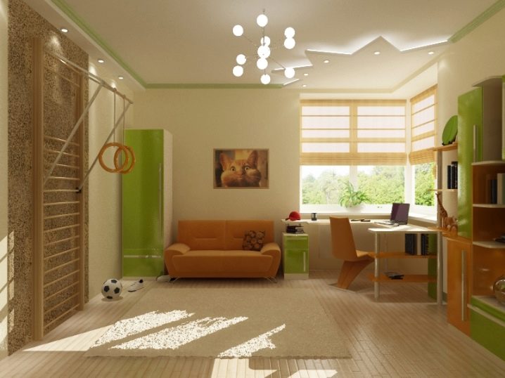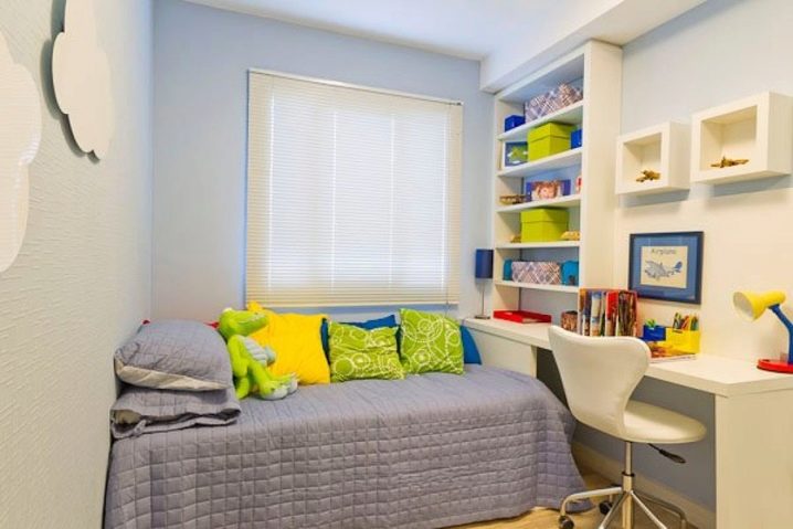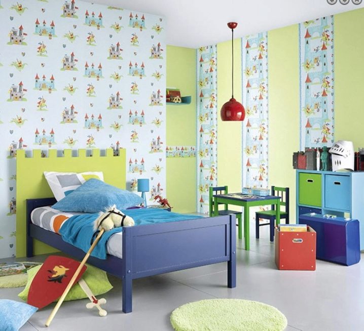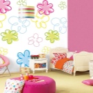 Wenn man über das Zimmer spricht, sollte man sich an seine Größe erinnern. Daher sehen leuchtende Tapeten am besten aus der Entfernung aus, so dass zu kleine Kinder mit anderen Arten von Wandteppichen bedeckt sein sollten.