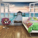 Interessanterweise sehen voluminöse Paneele mit der Wirkung von 3D aus. Das können Landschaften sein, die in die Ferne führen, Würfel und andere dreidimensionale Figuren, die mit geschicktem Schattenspiel entstehen. Es ist erwähnenswert, dass solche Tapeten, zum Beispiel mit einer Landschaft mit einem Fußweg oder einem Fluss, der in die Ferne führt, den Raum eines Kinderzimmers perfekt erweitern.