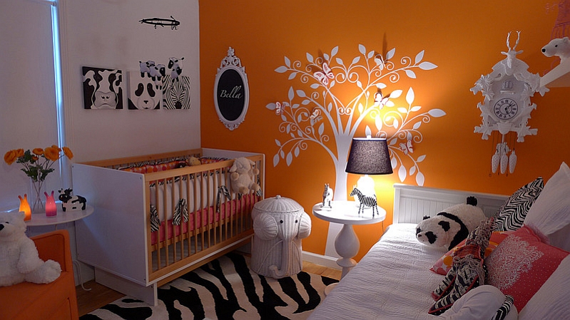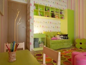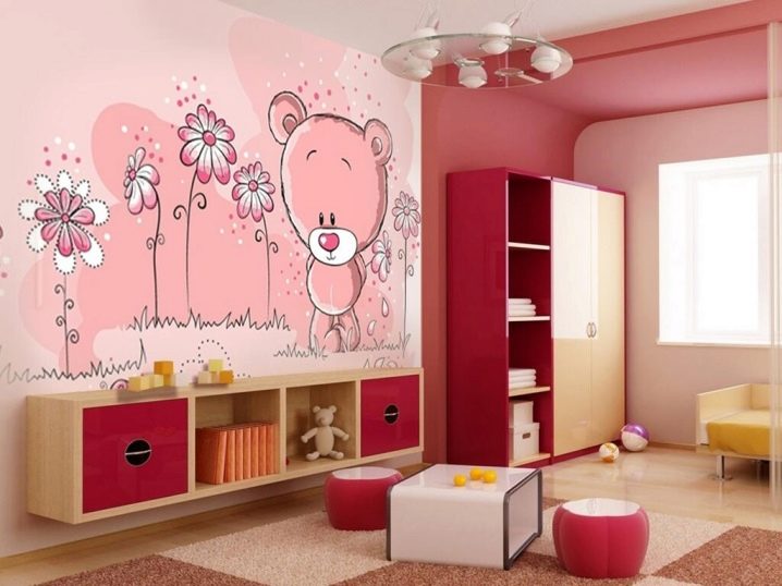 Seit ungefähr 4 Jahren versuchen Sie, das Baby mit reichen Tönen zu umgeben. Orange, gelbe, leuchtend rosa Tapeten werden eine würdige Dekoration des Kinderzimmers einer heranwachsenden und glücklichen Person sein.