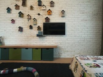 Kindertapeten unter den Ziegelsteinen in hellen und grauen Farben eignen sich für ein Jugendzimmer. Ihre Haltung wird erwachsenen Kindern helfen, sich nach einem anstrengenden Tag zu beruhigen. Brick Wallpaper sollte mit jedem anderen Typ abgewechselt werden.