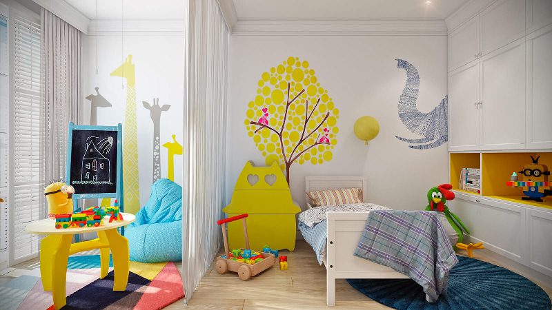 Manchmal denken wir nicht einmal darüber nach, wie das Innere einer Wohnung unser Leben und das Leben unserer Kinder verändert. Nach den Forschungsergebnissen entwickeln sich Neugeborene, die sich in einem Raum mit hellen und gesättigten Tapeten und Farbakzenten aufhalten, im Gegensatz zu Krümel in den reinsten weißen Wohnungen schneller.