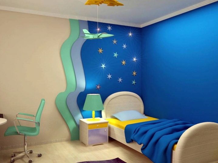 Wallpapers an der Decke im Kinderzimmer sind auch heute sehr beliebt.Sie können aus Vlies, Vinyl, Flüssigkeit bestehen und aus Glasfaser bestehen. Glasfaser ist eine der besten Optionen, die leicht lackiert und gereinigt werden können. Flizelinovy Arten bitte mit einer Vielzahl von Zeichnungen, zum Beispiel in Form von blauen oder Sternenhimmel.