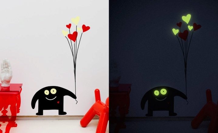 Die erste Variante wird erstellt, indem eine Leinwand mit einem Muster einer bestimmten Komposition überlagert wird. Es bietet die Ansammlung von Tageslicht Energie, die beginnt zu arbeiten und das Leuchten im Dunkeln zu reproduzieren.