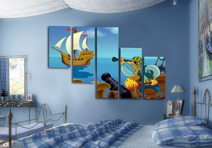 Die gleiche Regel kann mit den Schiffen, aber auf der Tapete zurückgeführt werden, wenn sie in Form eines weißen und schwarzen Konturen auf hellblauem Hintergrund gemacht werden, ist es eine hervorragende Möglichkeit ist, die gesamte Fläche zum Einfügen.
