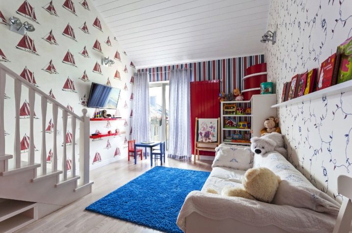 Heute bieten Designer Eltern an, ein Kinderzimmer in einer Vielzahl von stilistischen Themen neu zu erstellen. Dies erfordert spezielle Möbel, Accessoires, Textilien und natürlich Tapeten.