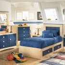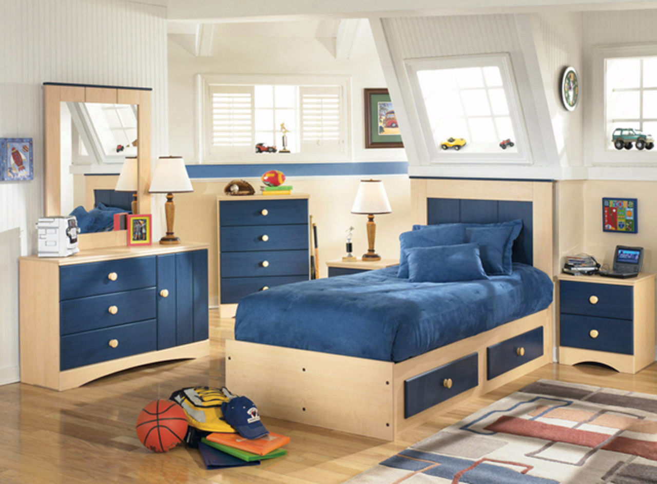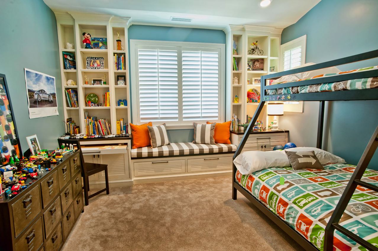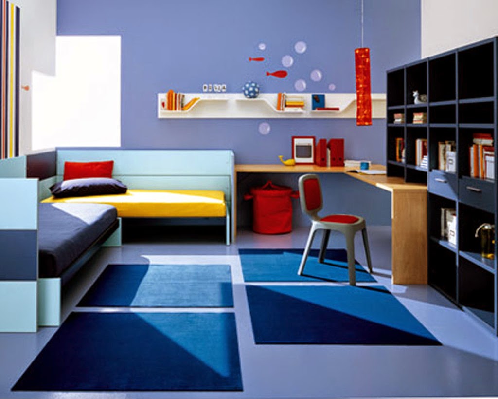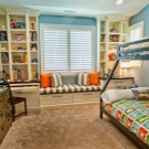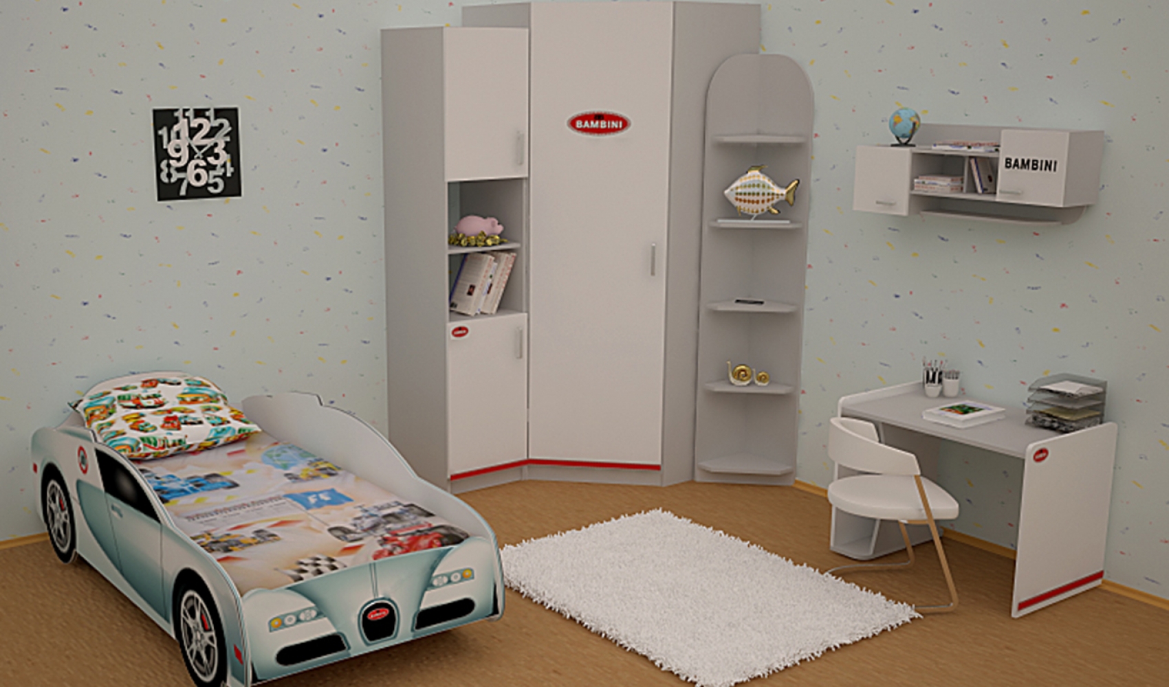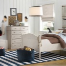 Kinder lieben es, zu spielen und die mit Spielen verbundenen Konventionen leicht zu erkennen. Mit Hilfe des Teppichs können Sie den Raum des Jungen visuell in mehrere Zonen unterteilen: schlafen, spielen, trainieren. Eine solche Anordnung wird das Interesse des Kindes hervorrufen, und er wird jede Zone als ein eigenes Gebiet mit eigenen Regeln wahrnehmen.