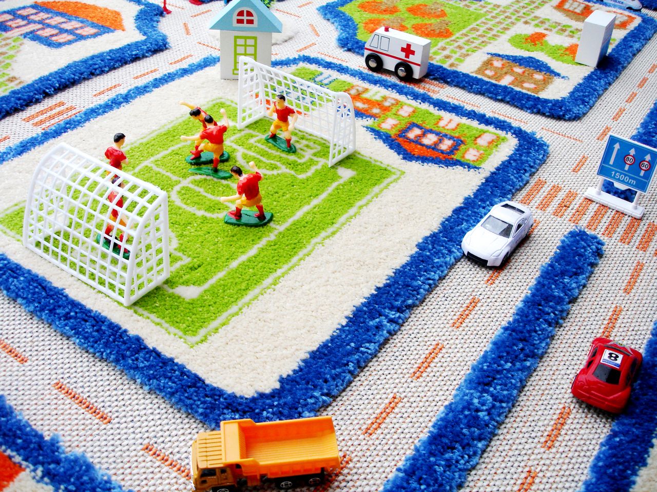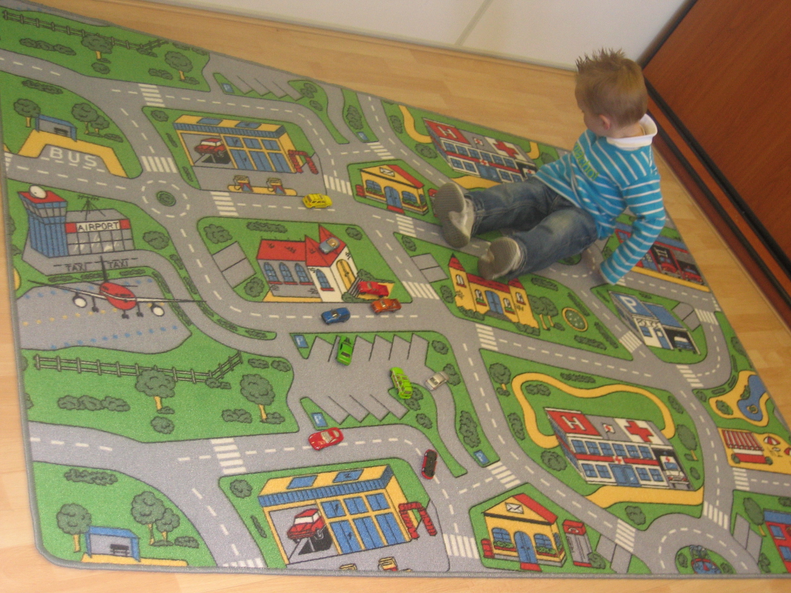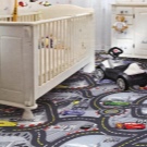 In der Zeit der Vorschulentwicklung, wenn ein langer Stapel nicht mehr benötigt wird, ist es besser, einen Teppich mit einem Stapel mittlerer Länge zu wählen. Während dieser Zeit wird der Raum zum Spielzimmer und es ist bereits wichtig, die persönlichen Vorlieben des Kindes zu berücksichtigen. Was könnte er mögen? Zum Beispiel ein Teppich mit dem Bild einer Autobahn oder einer echten Stadt. Oder eine Illustration mit den Charakteren Ihrer Lieblings-Cartoons oder Spiele.
