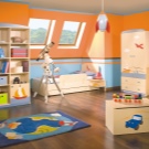 Psychologen haben herausgefunden, dass helle Farben auch die Psyche des Kindes anregen, also sollten Farben wie rot, gelb und leuchtend orange nicht für Böden verwendet werden, die Sie im Kinderzimmer auflegen möchten.