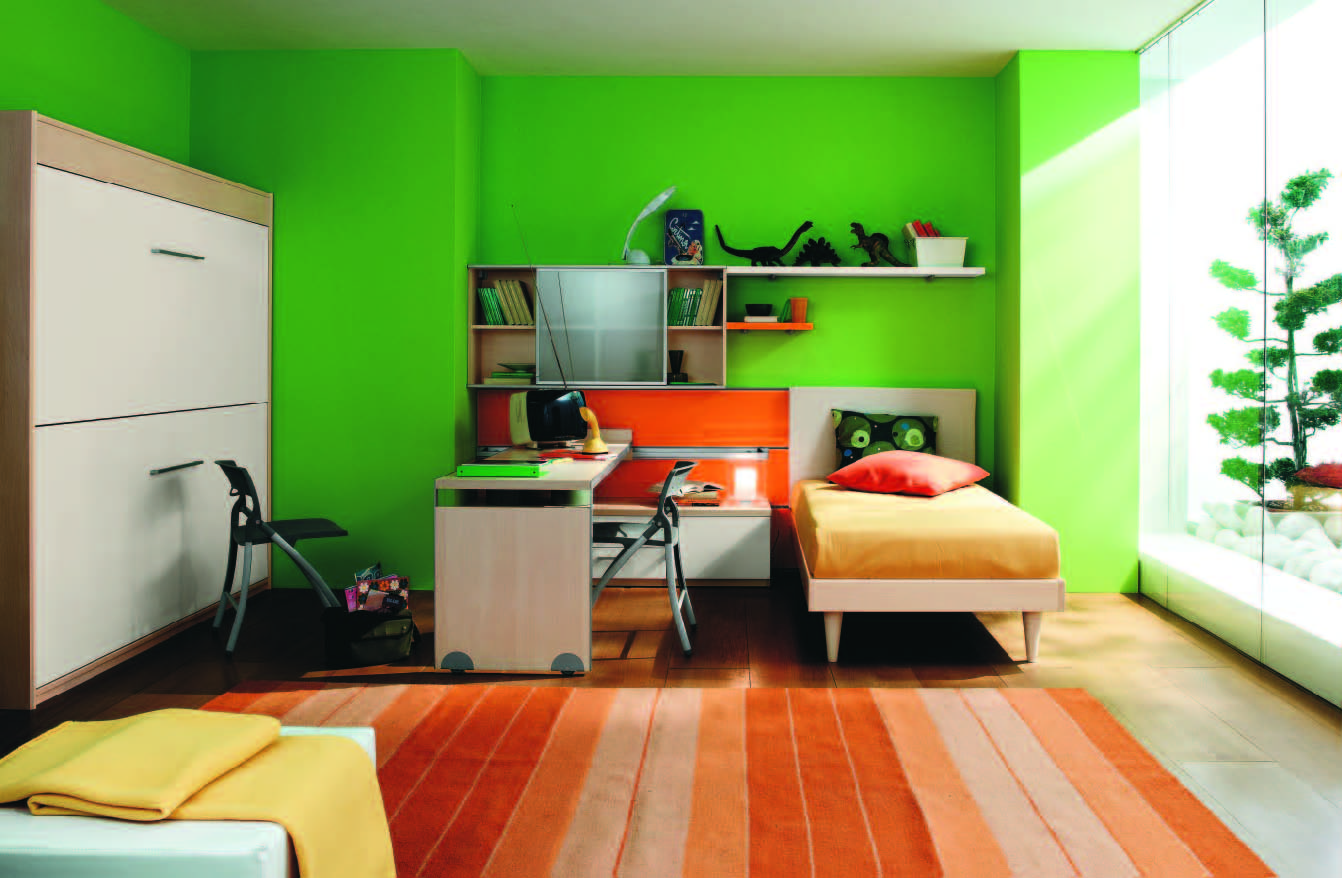 Grüne und blaue Farbtöne gelten als günstige Farben, also alle, die in der Natur vorkommen. Sie gelten als die optimalste für die Psyche des Kindes, da sie dazu beitragen, das Kind zu beruhigen und zu entspannen, besonders während der Zeit ihrer Hyperaktivität. Zur Unterstützung dieses Farbschemas ist anzumerken, dass Spielzeuge auf diesem Hintergrund deutlich sichtbar sind und nicht verloren gehen.