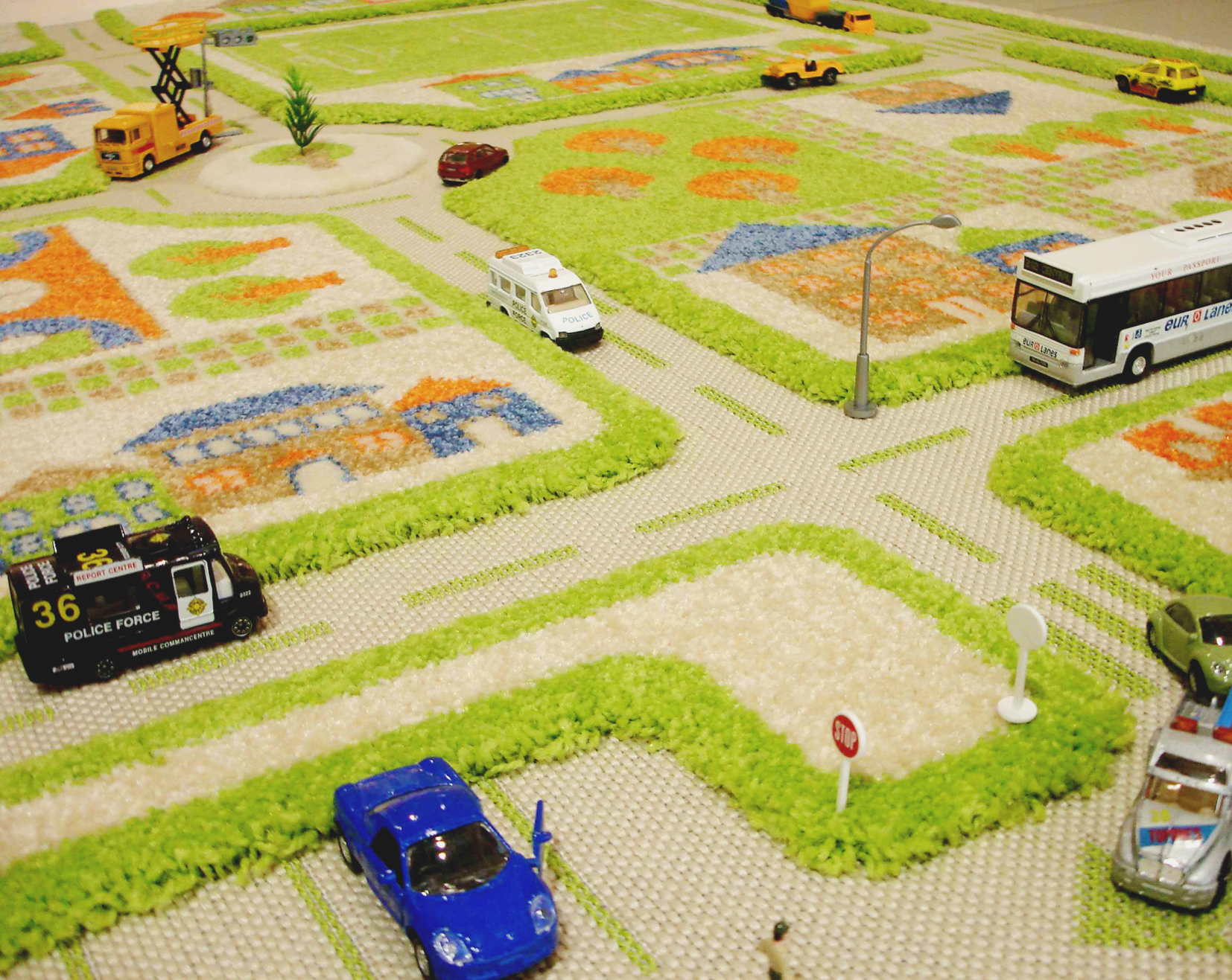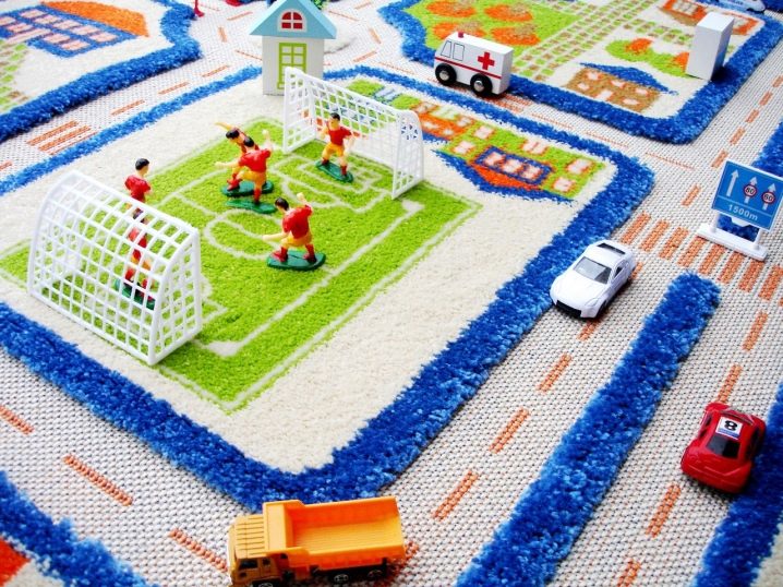 - Thematische Illustration (aufgrund der Tatsache, dass Sie auf einem Teppich einen Stapel von verschiedenen Längen verwenden können, dann kann sein Muster in Autobahnen, Parkplätze, ein Spielzeughaus verwandelt werden).