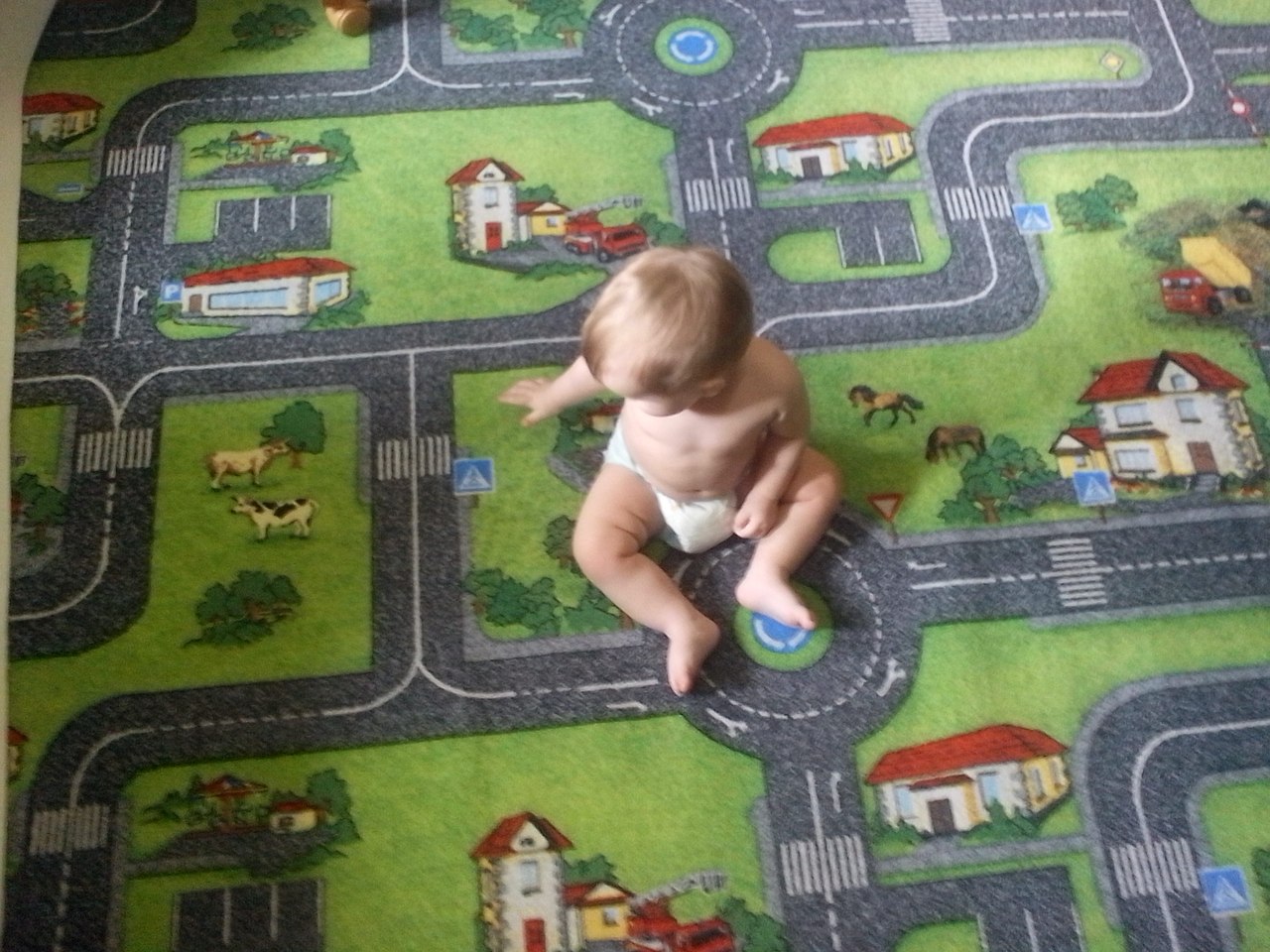 Die Zeit des schnellen Wachstums und der Entwicklung des Babys, wenn er zu kriechen beginnt und dann rennt. Es ist zu dieser Zeit am besten, einen Teppich mit einem langen angenehmen Griff zu bekommen. Um es angenehm zu machen und sanft zu fallen.