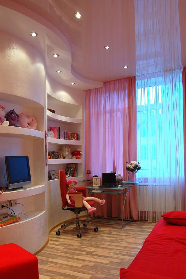 Für das Kinderzimmer können Sie abgehängte oder abgehängte Decken wählen. Meistens entscheiden sich Eltern für eine abgehängte Decke, weil Es ist aus natürlichen Materialien hergestellt.