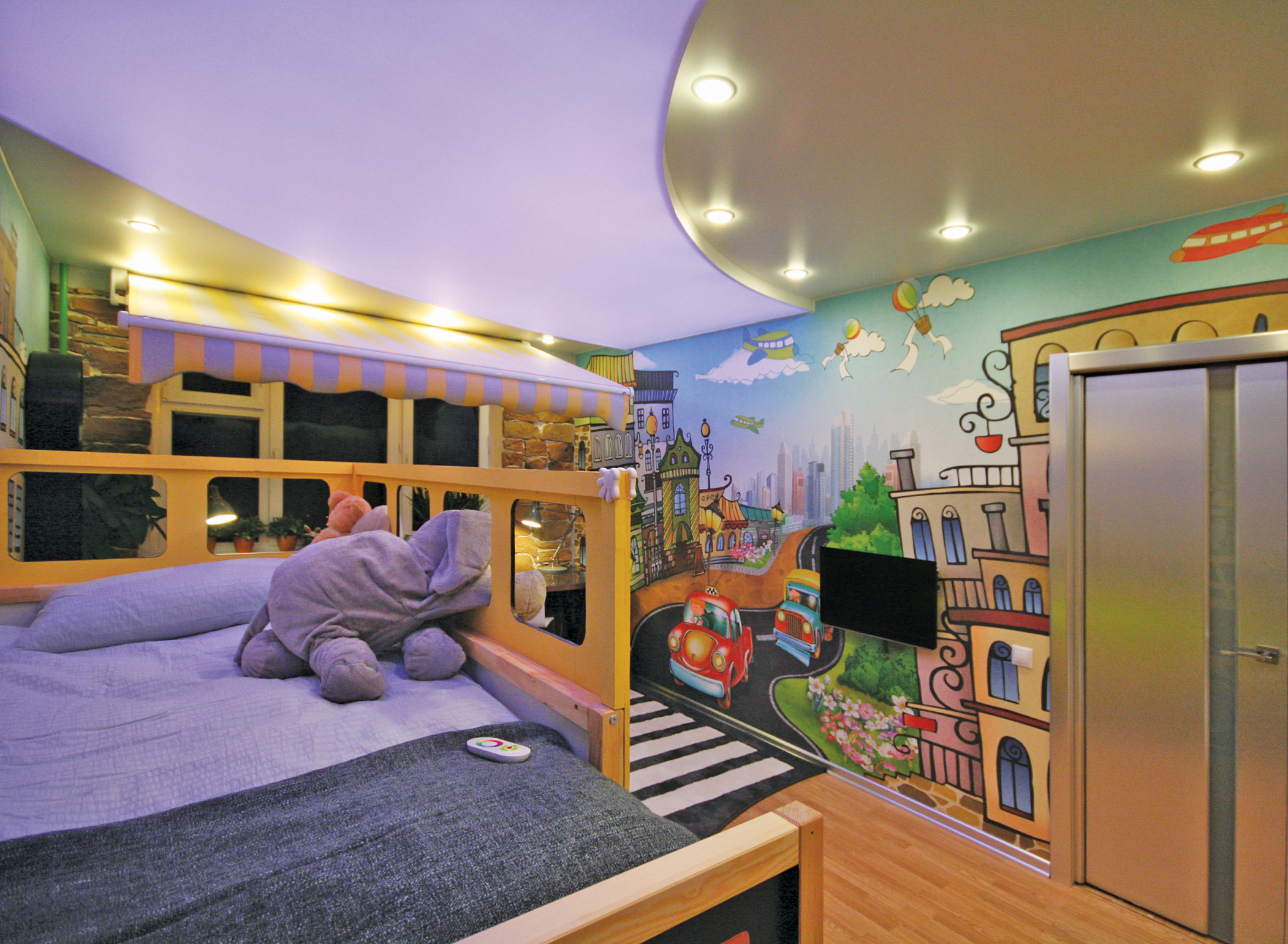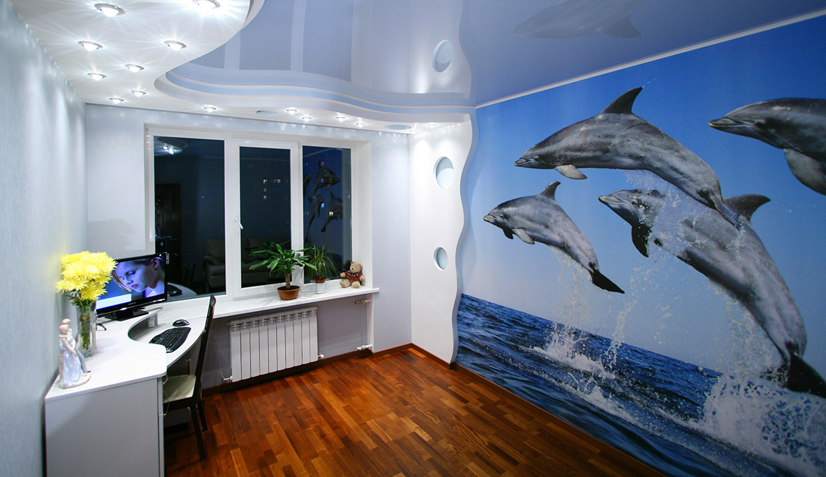- Für Schulkinder ist es besser, die Decke mit Naturbildern, Sternenhimmel, Wolken zu arrangieren.