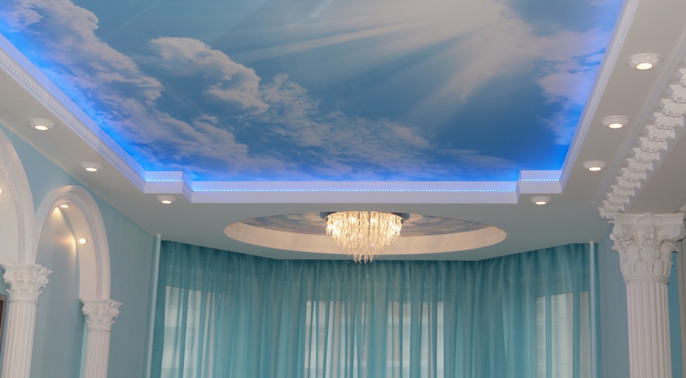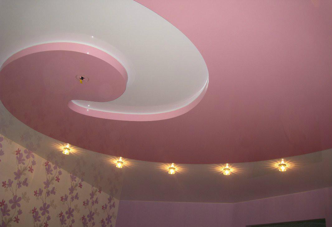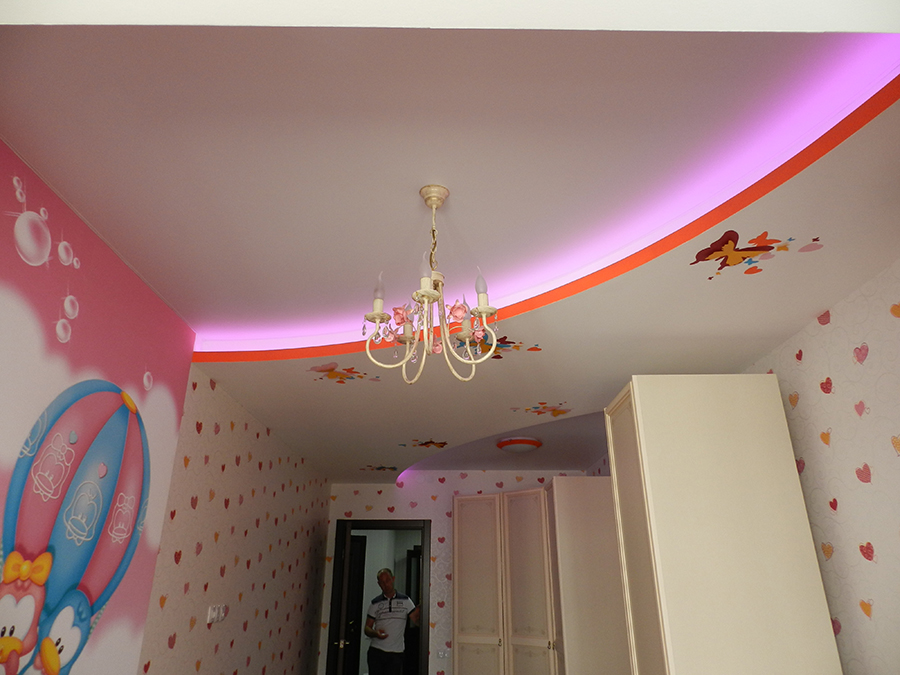 Um eine zweistufige Decke zu installieren, müssen Profis anlocken. Das Schneiden der Bahn und das Installieren der Decke ist eine unmögliche Aufgabe für selbständiges Arbeiten.