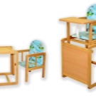 - Ein Hochstuhl, der sich in einen Schreibtisch verwandelt.