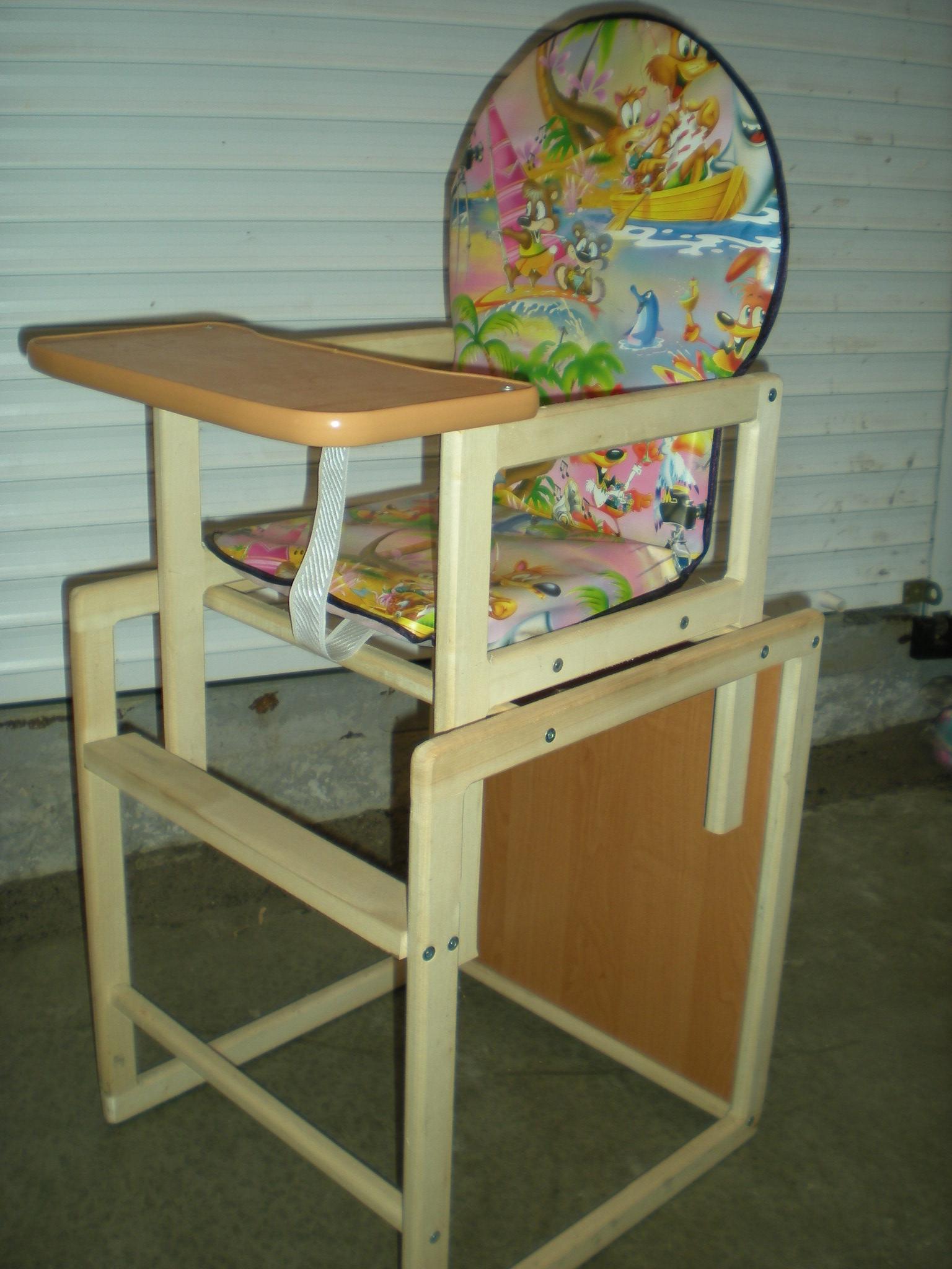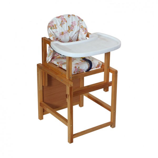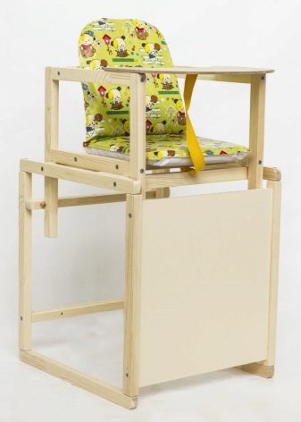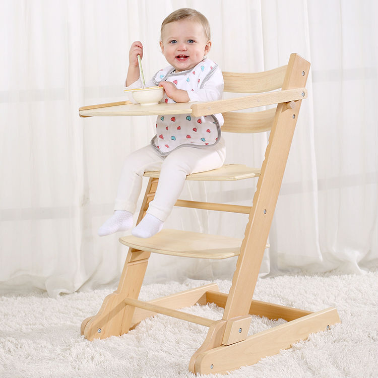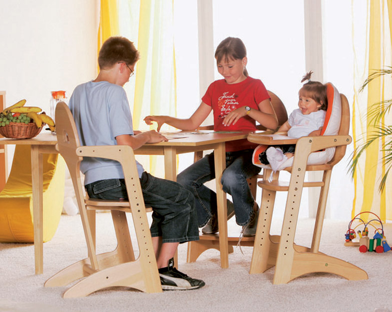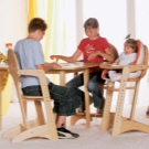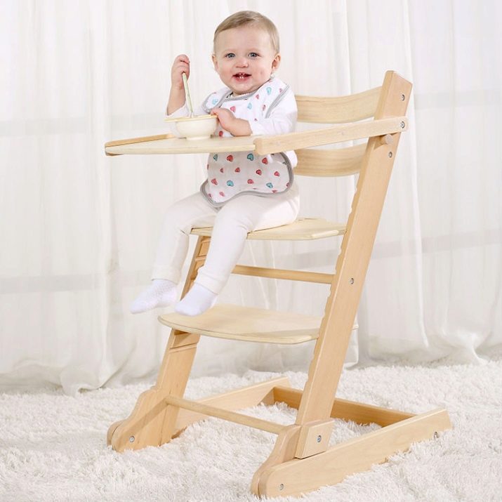Ab 6 Monaten können Eltern den Hochstuhl an ihren Tisch stellen und das Kind zu einer gemeinsamen Mahlzeit einladen. Es kann nicht nur zum Essen, sondern auch zum Spielen, Zeichnen und Falten verwendet werden. Es kann aus Holz oder Kunststoff sein.