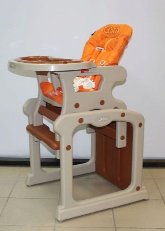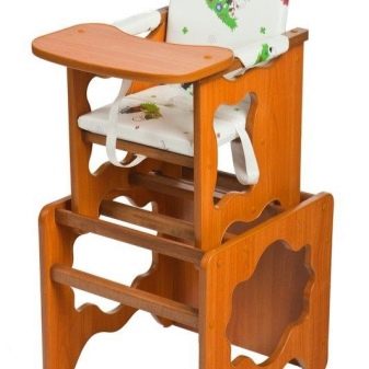 - Einige Modelle von Stühlen werden in einen Tisch mit einem Schreibtisch umgewandelt, der nicht nur in der Fütterung, sondern auch für Spiele eines Vorschülers oder Schulkindern der Grundstufen verwendet werden kann.