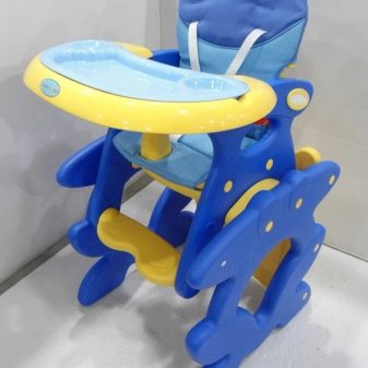 Um das Problem mit dem Fütterungsvorgang zu lösen, haben Kindermöbelhersteller ein einzigartiges Modell entwickelt - einen transformierenden Hochstuhl für die Fütterung. Ein großer Vorteil dieses Stuhls - er kann nicht nur zum Essen, sondern auch als Platz zum Spielen, als Schaukel oder Rollator verwendet werden.