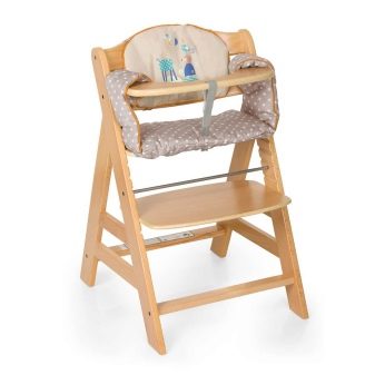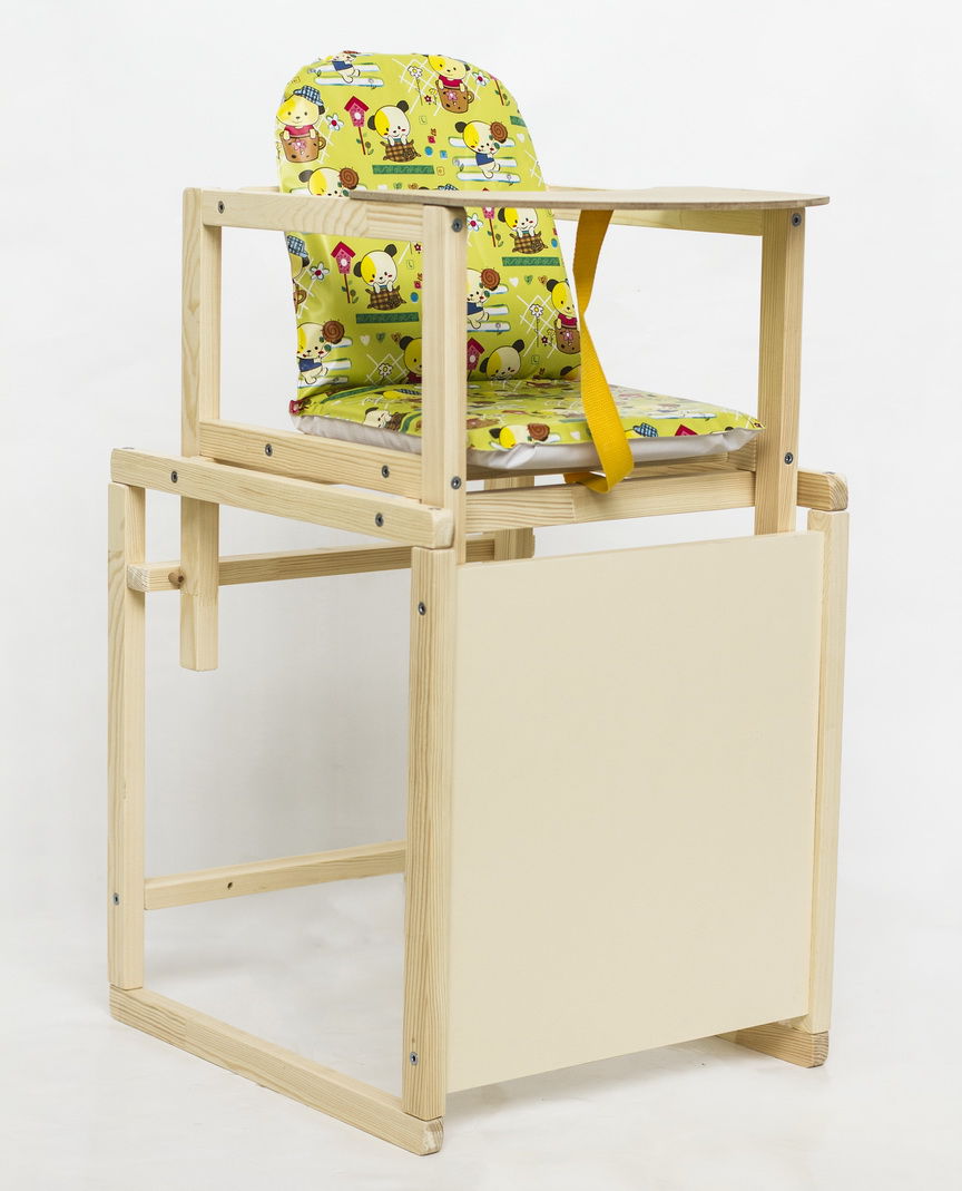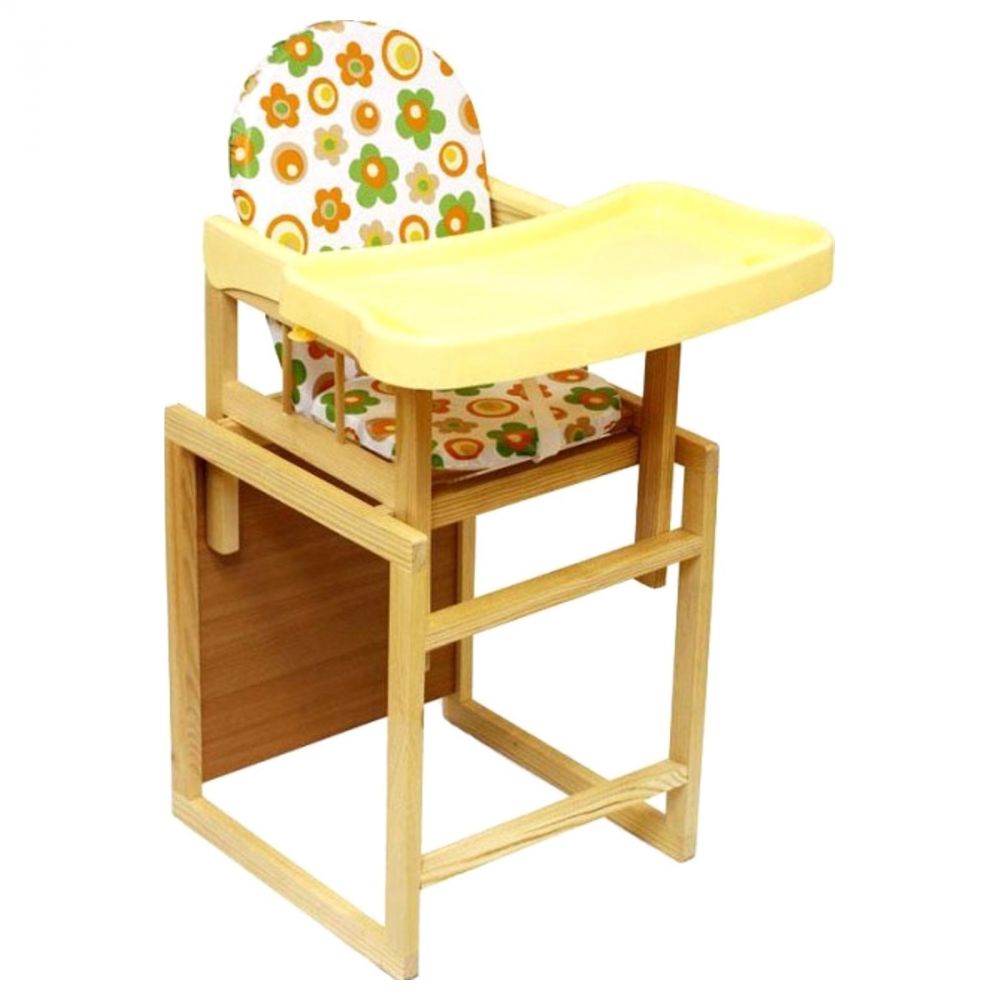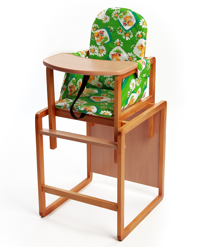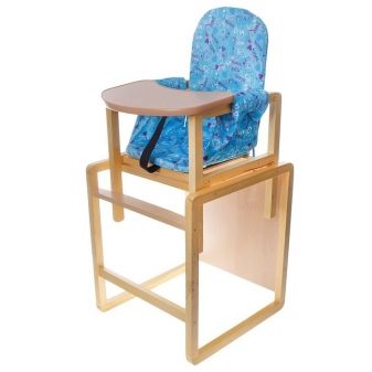 - Es ist besser, wenn der Sitz aus gummiertem Tuch oder Wachstuch besteht. Wenn das Baby einen transformierenden Hochstuhl bekommt, können Sie es mit einem feuchten Tuch abwischen.