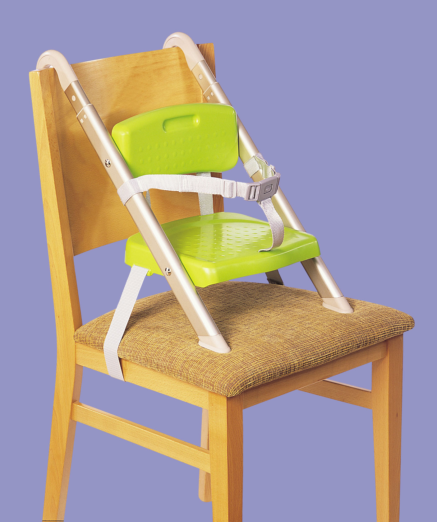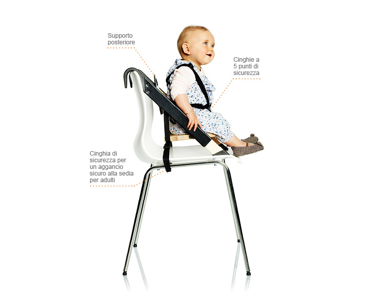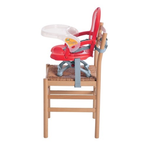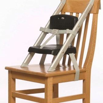 Dies ist das am wenigsten populäre Modell, da es nicht sehr sicher ist. Der Kinderstuhl wird auf einem Erwachsenenstuhl befestigt. Die Stabilität dieses Modells hängt davon ab, wie fest ein erwachsener Stuhl auf der Oberfläche steht.