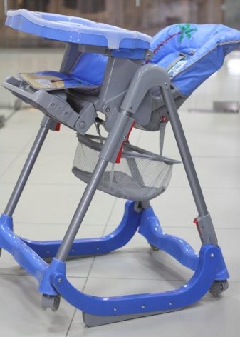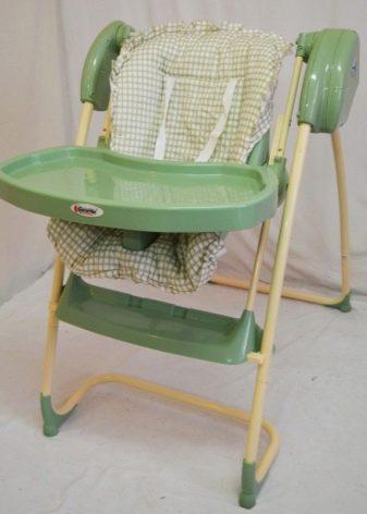- In einem solchen Stuhl ist es bequem, das Baby zu füttern, da es sicher fixiert ist.