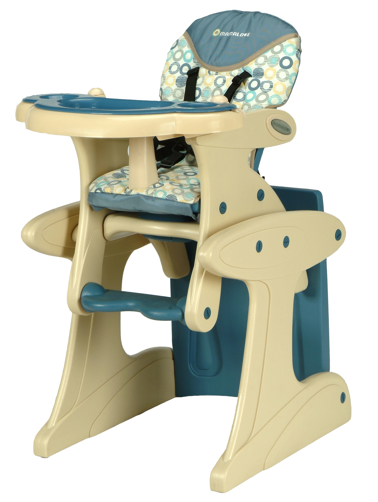 - Der transformierende Stuhl sollte mit einer abnehmbaren Tischplatte oder einem Tisch für das Baby ausgestattet sein, die in verschiedenen Positionen installiert werden können.