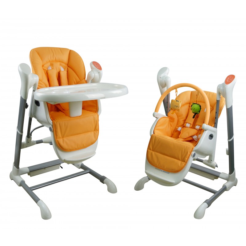 Dies ist ein Modell Stuhl mit einem Schaukelstuhl. In der üblichen Position ist es ein normaler Stuhl, in dem das Baby mit Sicherheitsgurten gefüttert werden kann, damit er nicht herausfällt. Entfernen Sie die Fixierung, verwandeln Sie diesen Stuhl in eine Schaukel.