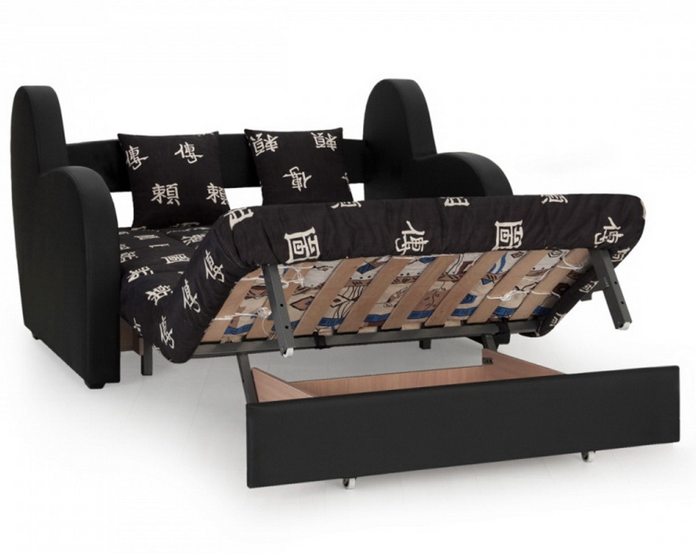 Umwandlungsmechanismus "Akkordeon" Damit können Sie das Sofa schnell und einfach demontieren und in ein bequemes Bett verwandeln. Es ist nur notwendig, den Sitz überzuziehen, die Rückenlehne abzusenken und der bequeme Schlafplatz ist fertig. Designer versuchten, solche Möbel mit Leichtigkeit in das Innere eines jeden Schlafzimmers oder Wohnzimmers zu integrieren, so dass es eine harmonische Ergänzung wurde. Es ist eine kleine Konstruktion, seine Abmessungen sind wie folgt: Breite - 145 cm, Höhe - 88 cm, Tiefe - 104 cm, Sitzhöhe - 44 cm, Bett - 128 x 204 cm.
