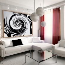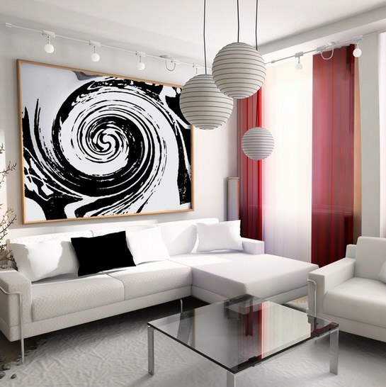 Der High-Tech-Stil wird Sofas mit roter, dunkelroter, schwarzer oder weißer Haut harmonisch aussehen.