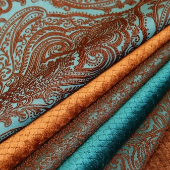 - Jacquard - der dichteste Stoff. Es stellt sich ein Verflechten von mehrfarbigen Fäden heraus, die Zeichnung bilden. Der Stoff knittert fast nicht, erfährt keine Verformung. Etwas steif. Leicht zu reinigen. Möbel mit solchen Polsterungen sehen luxuriös aus.