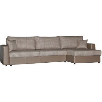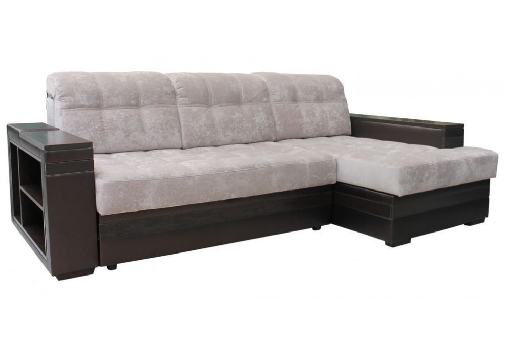 - Ecksofa "Weimar" Es hat einen großen Schlafplatz (2900x1560 mm). Unter dem Sitz und in der Ottomane befindet sich ein Behälter für Wäschezubehör. Die Seiten sind abnehmbar. Transformationsmechanismus - "eurobook". Diese Vorrichtung hat Holzführungen, die eine leichte Bewegung der Rollen oder Polymergleitlager ermöglichen. Das Sofa lässt sich leicht zusammenklappen: Der Sitz wird herausgezogen und der Rücken wird auf die freigewordene Nische abgesenkt.