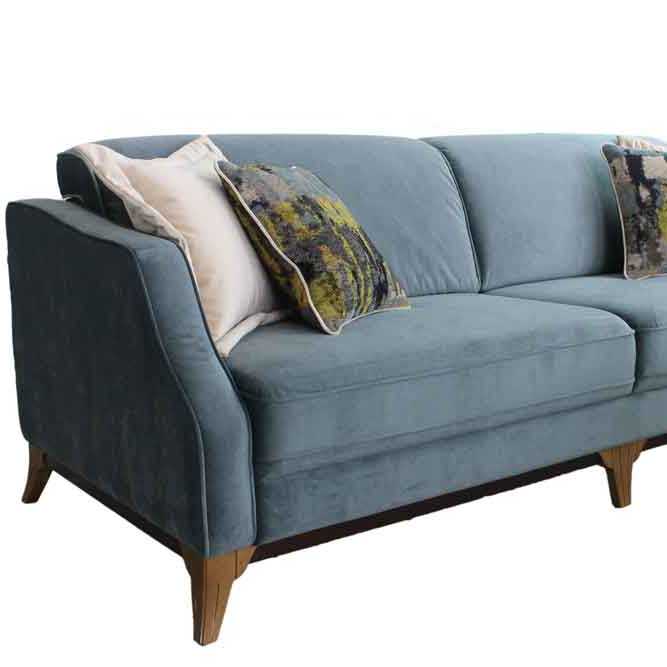 - Velours - gestrickter Nickerchenstoff. Das Material hat einen warmen Glanz, hält perfekt die Farbe. Die am häufigsten verwendeten Naturfasern: Wolle, Baumwolle oder Seide. Manchmal werden Nylon- oder Polyestergarne verwendet. Die Vorteile von Velour sind: hohe Festigkeit, langfristige ästhetische Erscheinung, Farbstabilität, Aufrechterhaltung der Körpertemperatur: Es ist sehr angenehm, sich auf einem solchen Sofa auszuruhen.