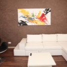 Die beste Option für die Dekoration des Wohnzimmers ist eine Kombination aus Schokolade und Weiß. Weiße Möbel vor einem dunklen braunen Hintergrund sieht stilvoll und elegant aus. Dieses Interieur kann durch helle Akzente ergänzt werden: Sofakissen, Blumentöpfe, Wand- oder Tischdekor in bunten Gelb-, Orange-, Rot- und Türkistönen.