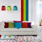 - Vielseitigkeit. Ein weiteres Merkmal der weißen Farbe ist ihre Kompatibilität mit fast jedem Farbton der Farbpalette. Weiße Farbe wird interessant sein, in der Gesellschaft von Pastelltönen und verschiedenen hellen Farben zu sehen.
