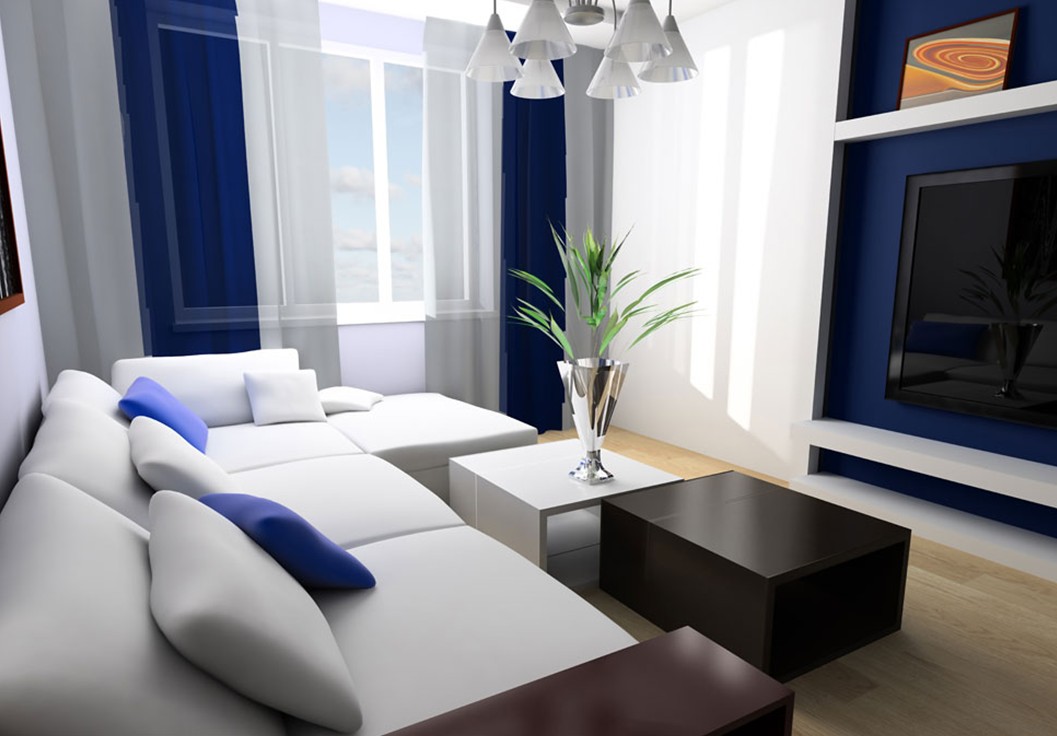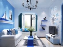 Wer sich für Mode interessiert, interessiert sich für Interieurs, bei denen Weiß mit Violett, Blau und Azurblau kombiniert wird. Ein solches Zimmer kann im maritimen Stil oder im Landhausstil eingerichtet werden.Wie Sie sehen können, wird ein weißes Sofa in fast jedem Interieur spektakulär aussehen.