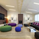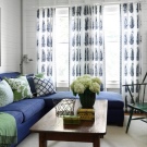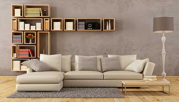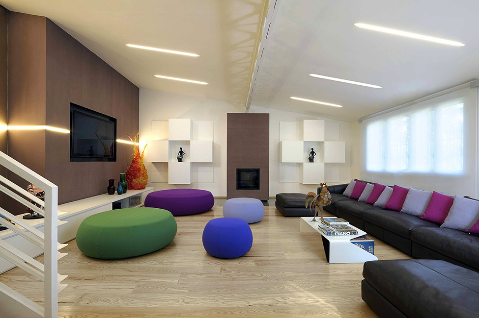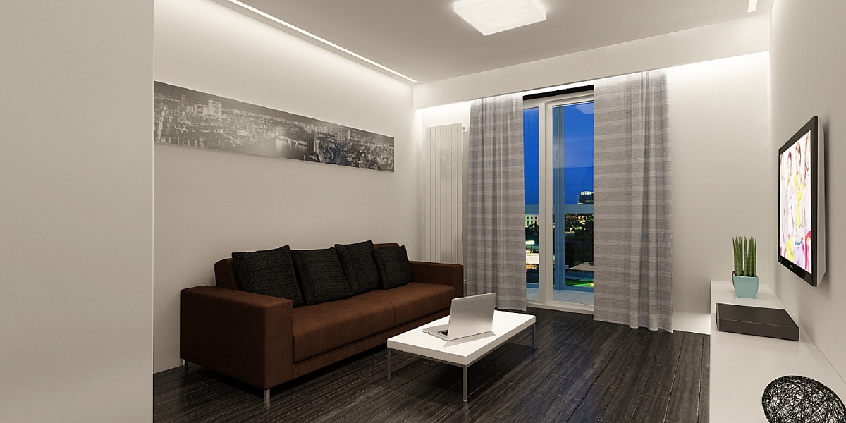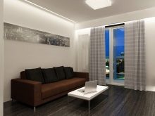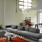 In einem länglichen Raum wird empfohlen, ein langes und gerades Sofa in der Nähe einer kleineren Wand zu installieren.Wenn das Zimmer geräumig genug ist, können Sie zwei Sofas, eines gegenüber dem anderen entlang der Wände stellen. Ergänzen Sie die Zusammensetzung können Tabellen oder Nachttische sein.